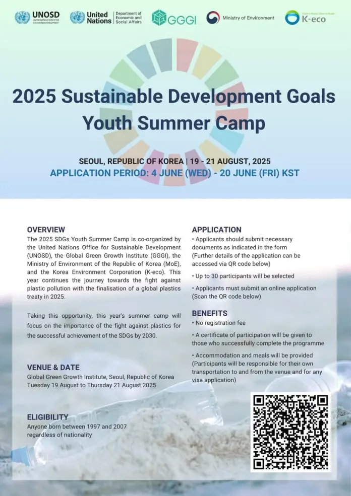 Organized in partnership with major global institutions like the United Nations Office for Sustainable Development (UNOSD), Global Green Growth Institute (GGGI), Korea Environment Corporation (K-eco), and South Korea’s Ministry of Environment (MoE), the SDGs Youth Summer Camp 2025 offers a unique platform to build cross-cultural networks, participate in collaborative environmental workshops, and present innovative ideas to experts and peers. This fully funded opportunity covers all program costs—no application fee is required, and there’s no need to submit IELTS scores. It’s tailored to students, young professionals, and environmental enthusiasts aged between 18 to 30 who want to take real action toward achieving the SDGs by 2030.